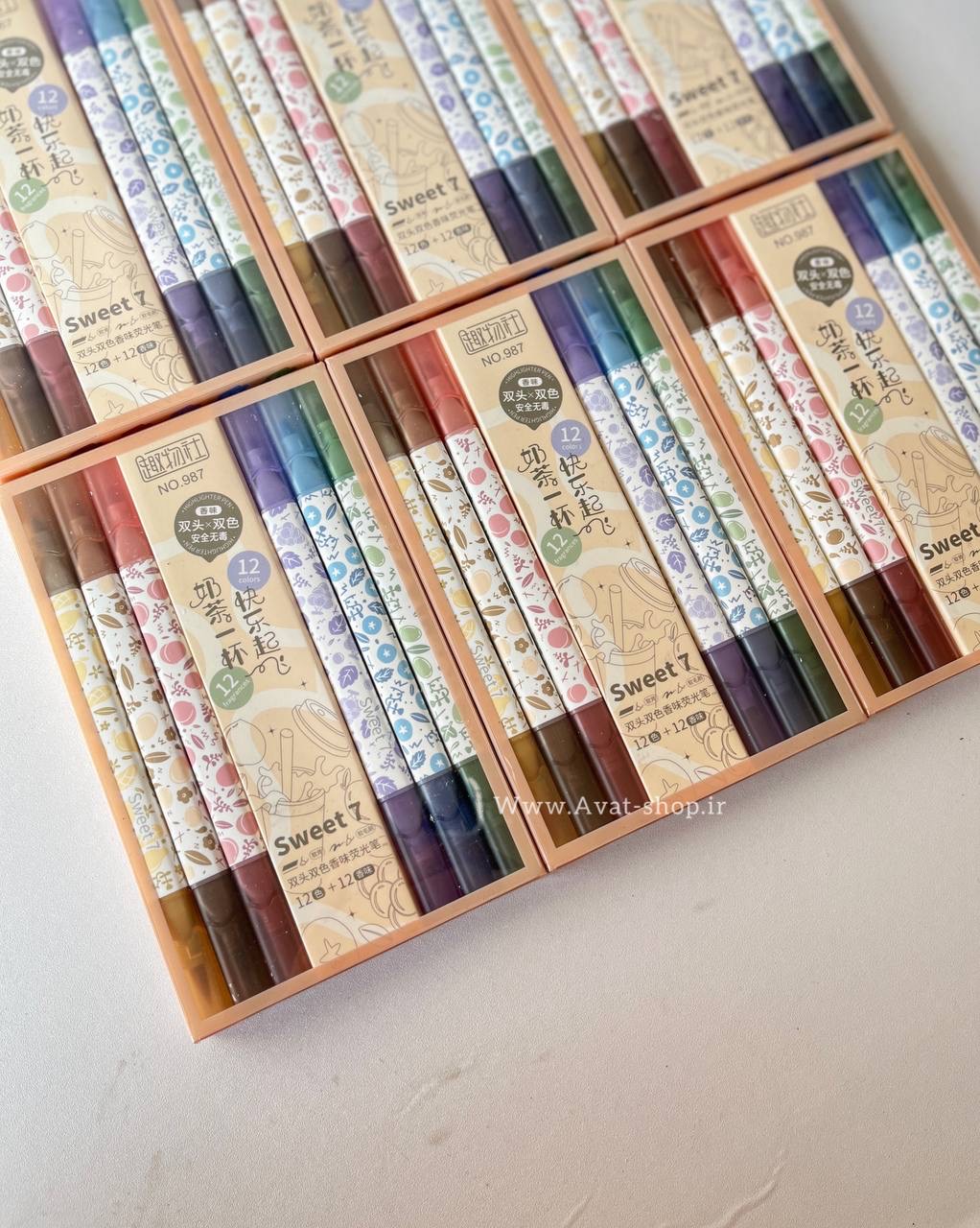خانه هایلایتر و ماژیک هایلایتر عطری میوه ای ۱۲رنگی دوسر
