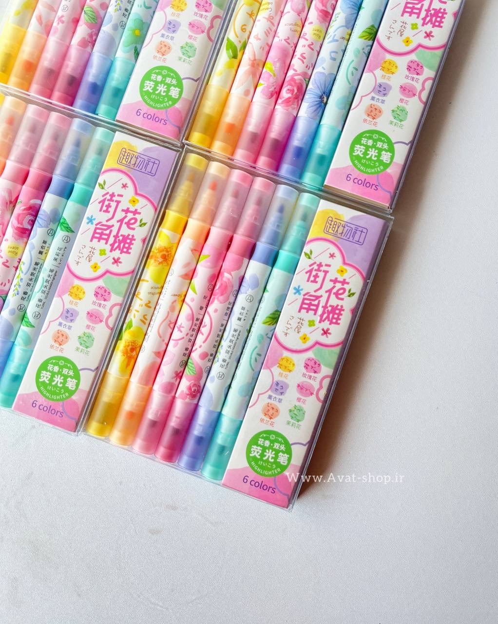 خانه هایلایتر و ماژیک هایلایتر عطری گل ۶عددی رنگی دو سر