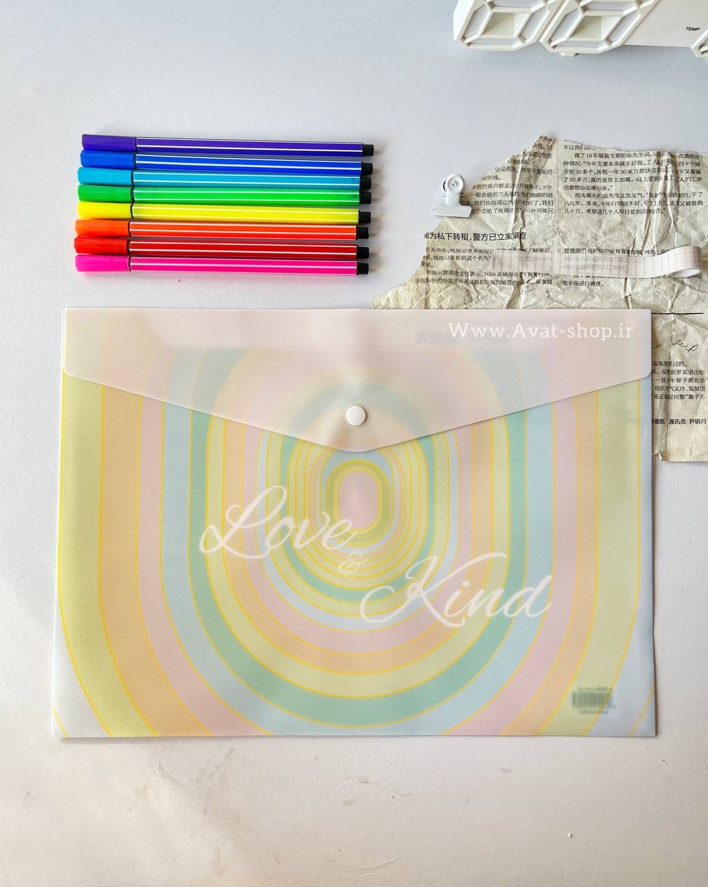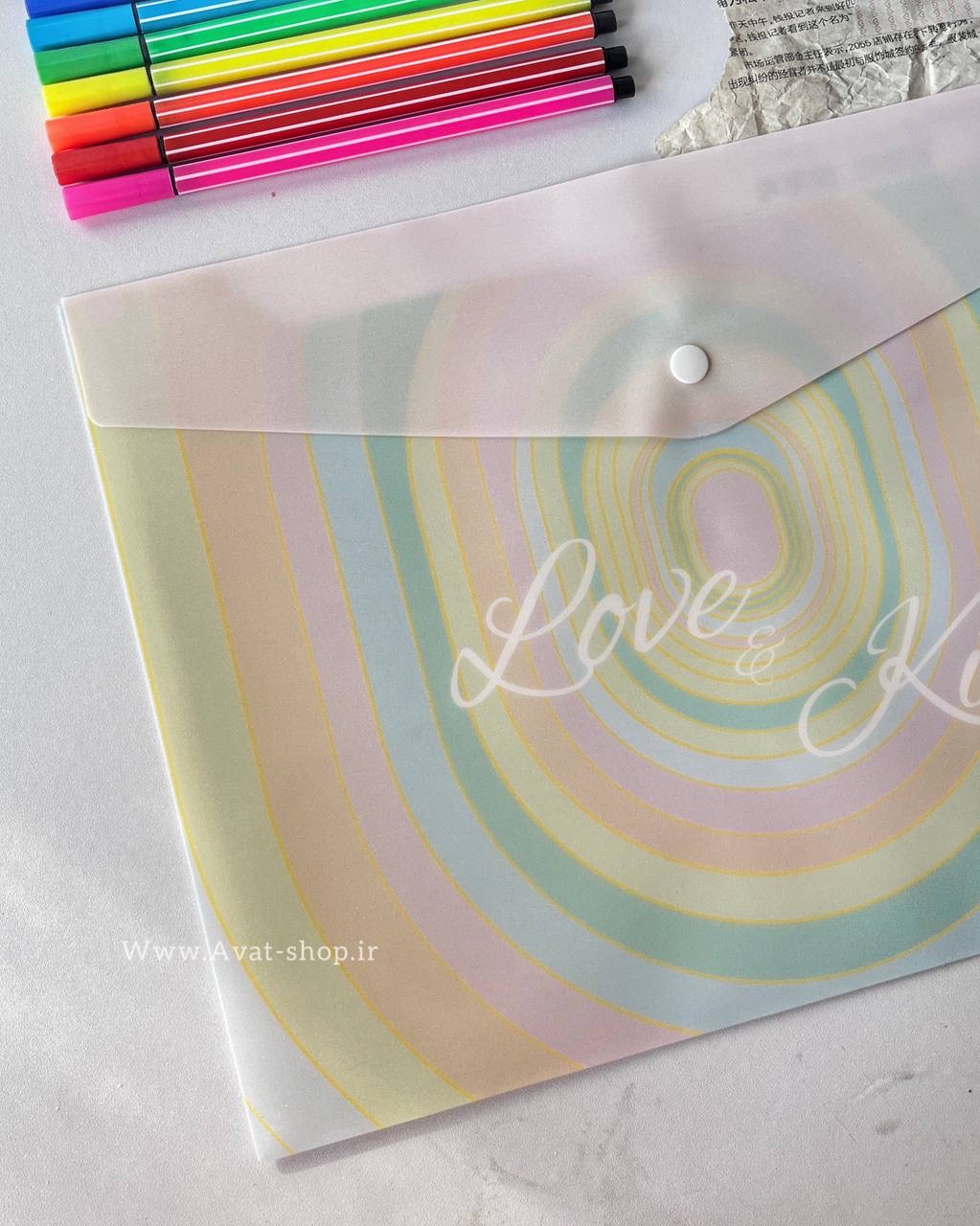 پوشه دکمه دار اکلیلی طرح رنگارنگ