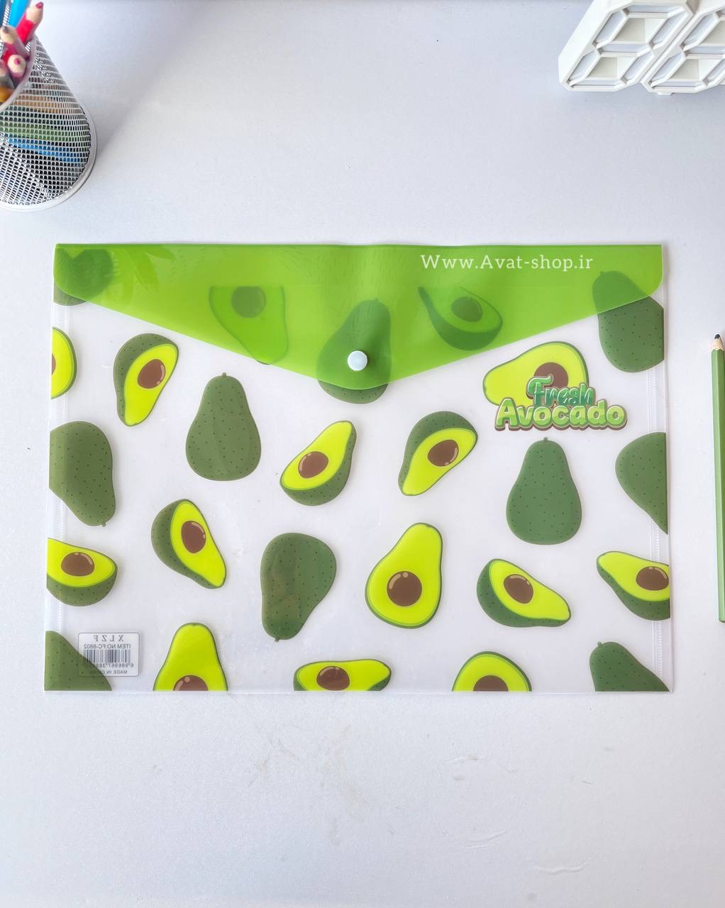پوشه دکمه دار شفاف طرح آووکادو