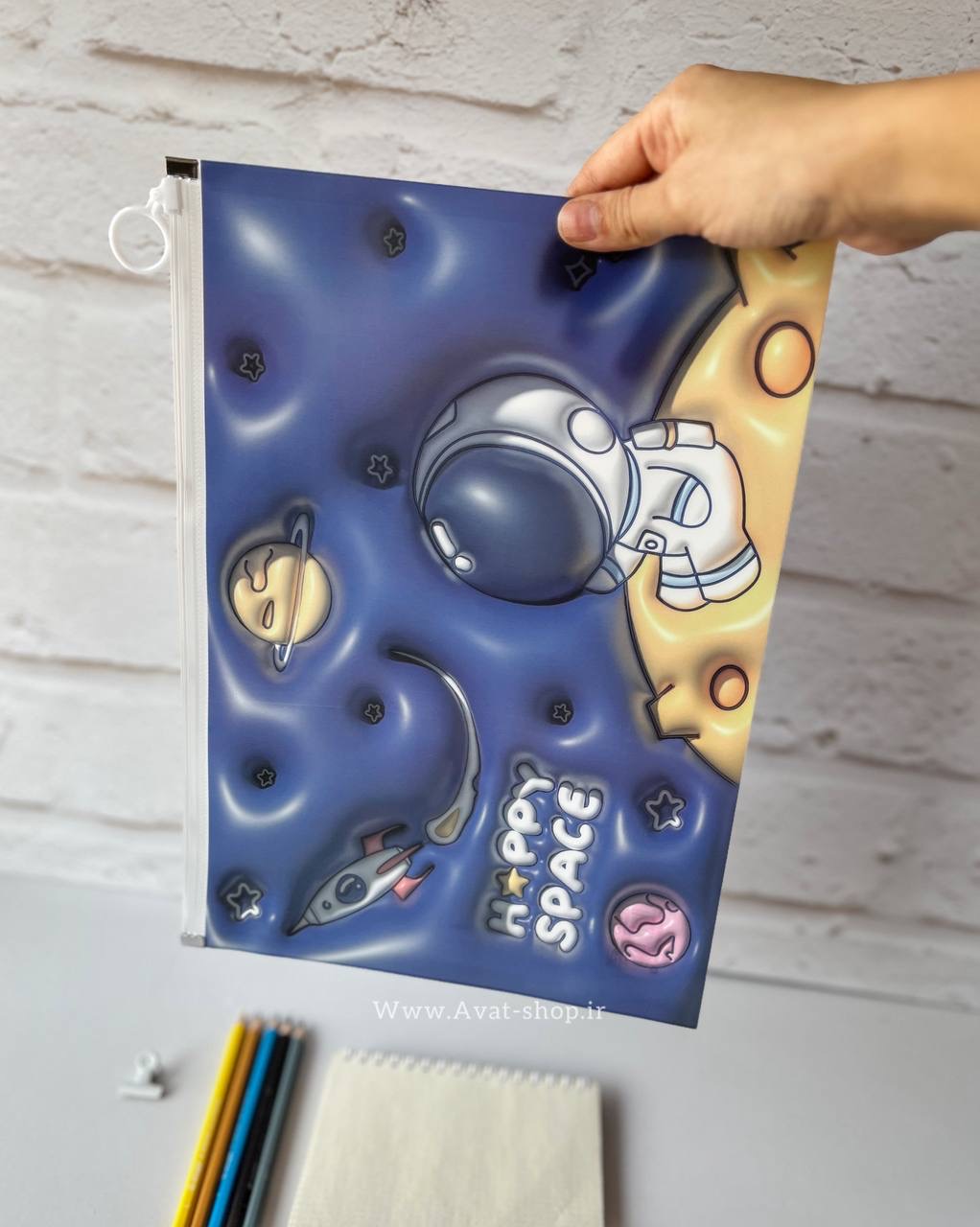 پوشه زیپی آ۴ شفاف طرح فضانورد