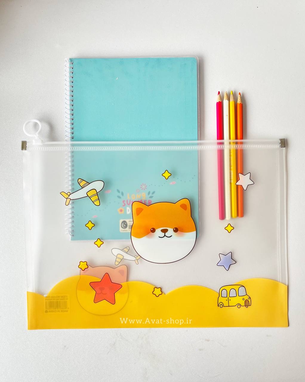 خانه پوشه و ابزار پوشه زیپی آ۴ شفاف طرح کیوت